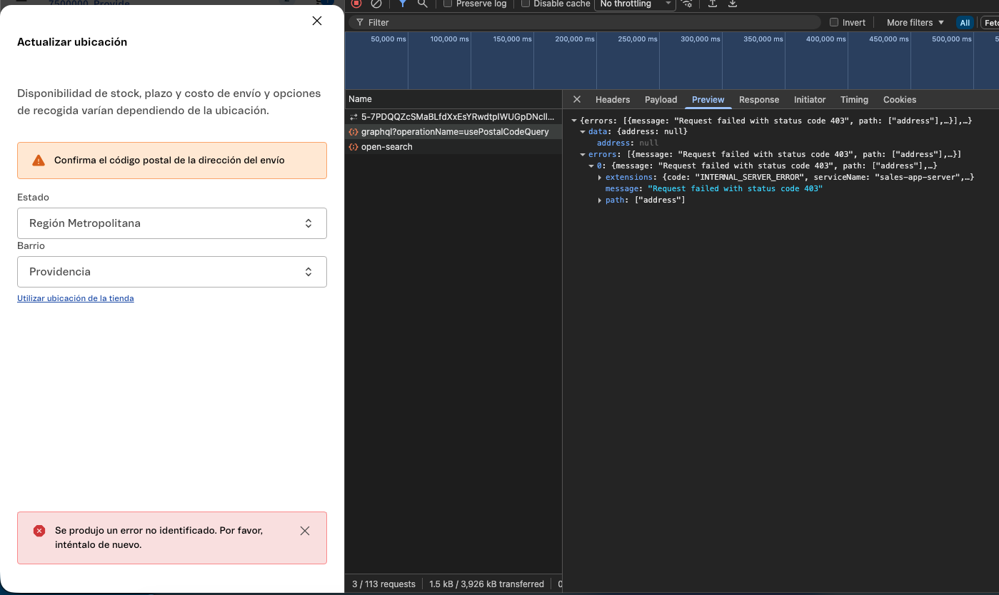 Estoy presentando un error http 403 en VTEX Sales App cuando intento cambiar la ubicación en la app. Tenemos activado la geolocalización en el admin además de tener configurada una appKey de Google Maps donde dentro de los dominios permitidos se encuentra el ambiente donde estamos probando esta aplicación.